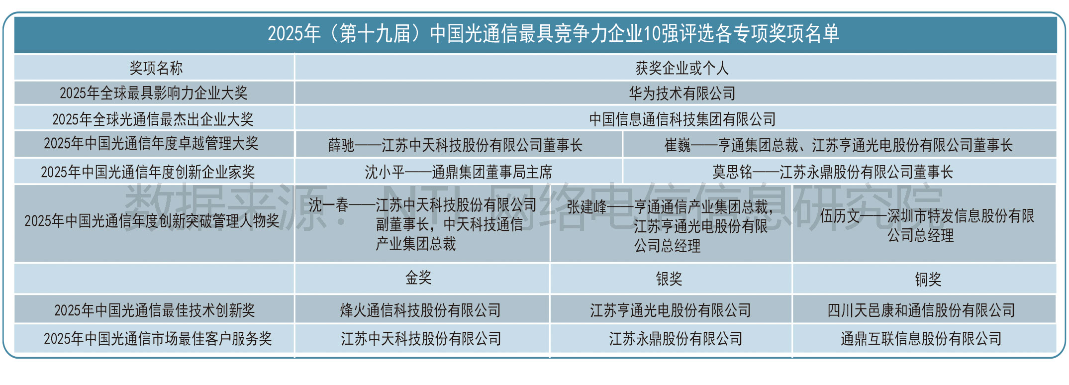 最后,《网络电信》及《年度全球|中国光通信最具竞争力企业10强》评审组全体人员诚挚感谢业界同仁过去19年来对此项评选活动的帮助和支持!
