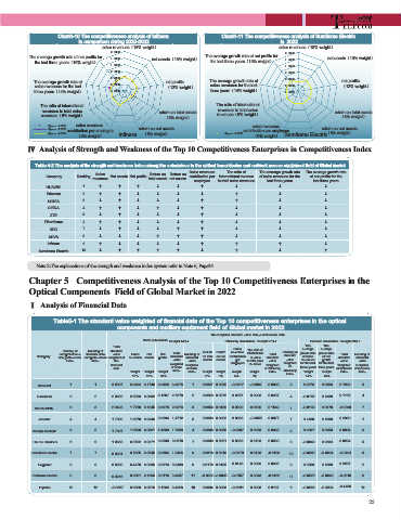 Table5-1 The standard value weighted of financial data of the Top 10 competitiveness enterprises in the optical