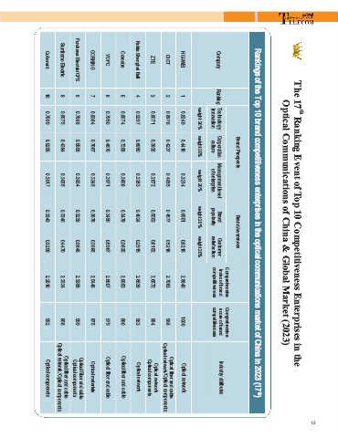 Rankings of the Top 10 brand competitiveness enterprises in the optical communications market of China in 2023 (17 th )
