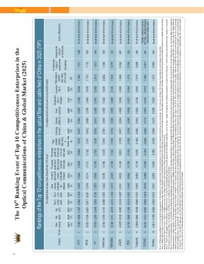 business, while the data of the other 3 lists is the sales revenues of the related products in the sub-sectors of the optical communications industry.