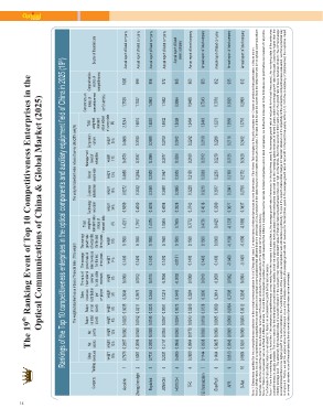 business, while the data of the other 3 lists is the sales revenues of the related products in the sub-sectors of the optical communications industry.