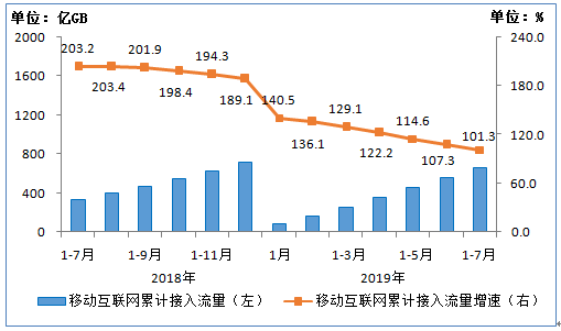 图4  2018年7月底-2019年7月底手机上网用户情况