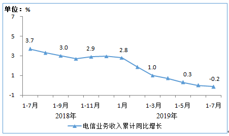 2019年1-7月份通信业经济运行情况:电信业务收入同比下降0.2%