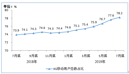 图2  2018年7月底-2019年7月底4G用户总数占比情况